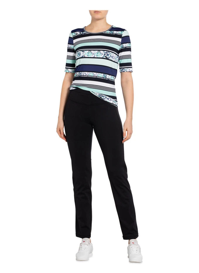 Изготовлен из функционального материала. Подходит согласно производителю: Body Fit. Прямая, узкая ножка. Формирующий эффект. Растяжка в 4 стороны. Дышащая и регулирующая влажность. Широкий эластичный пояс. Плоские швы. Подробности этикетки