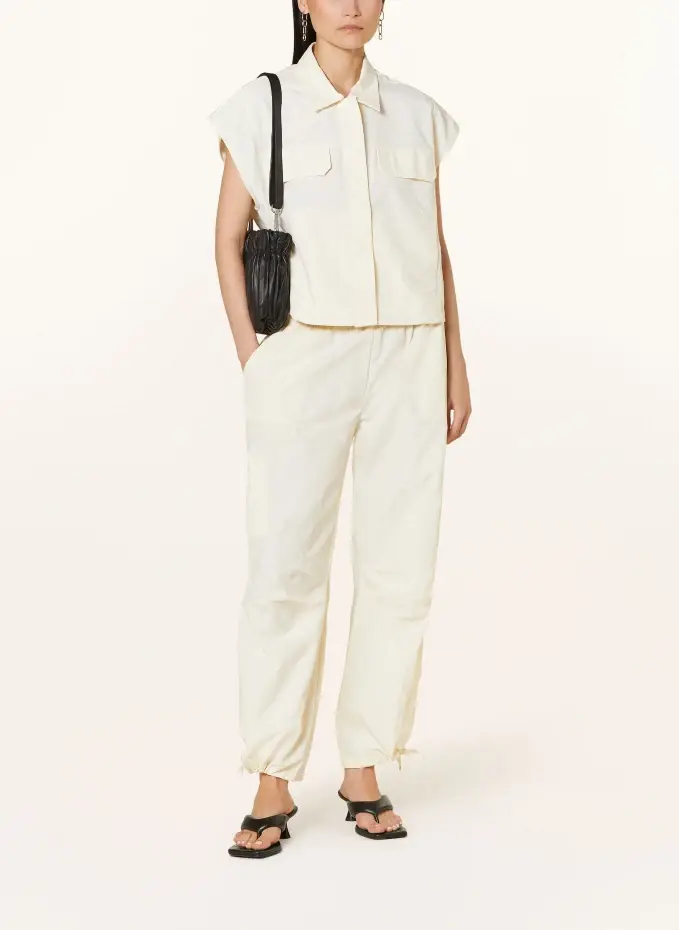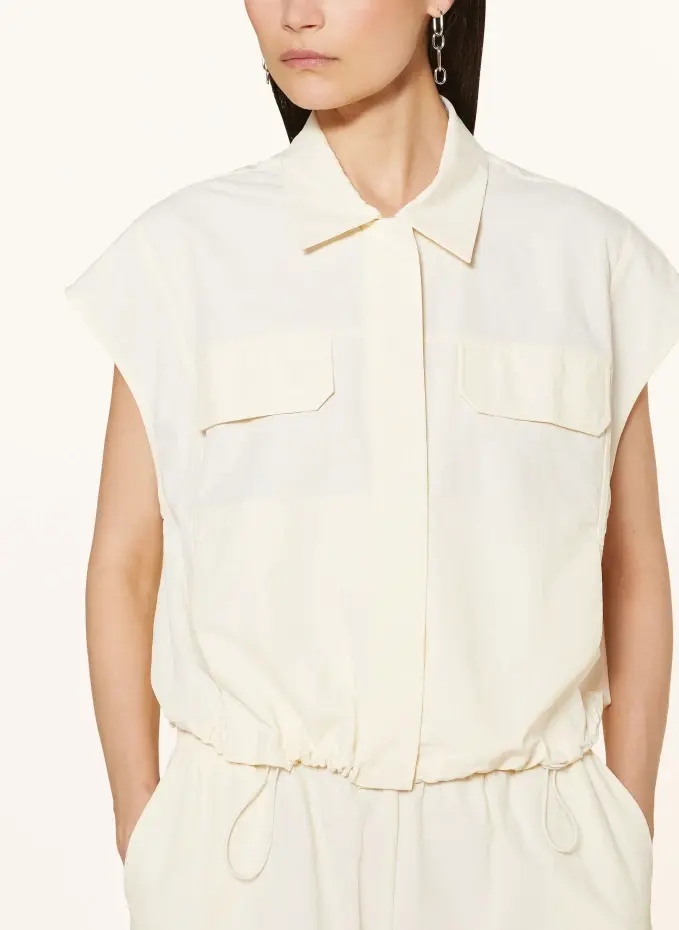 Прямого покроя. Воротник рубашки. Закрывается на потайные кнопки. Декоративные карманы с клапанами на уровне груди. Концы рукавов закруглены. Шнурок со стопором по краю. Нескользящее ощущение
