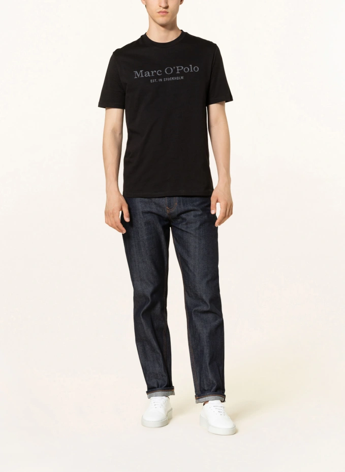 Прямого покроя. Круглый вырез. Надпись на этикетке спереди. Чистое качество хлопка