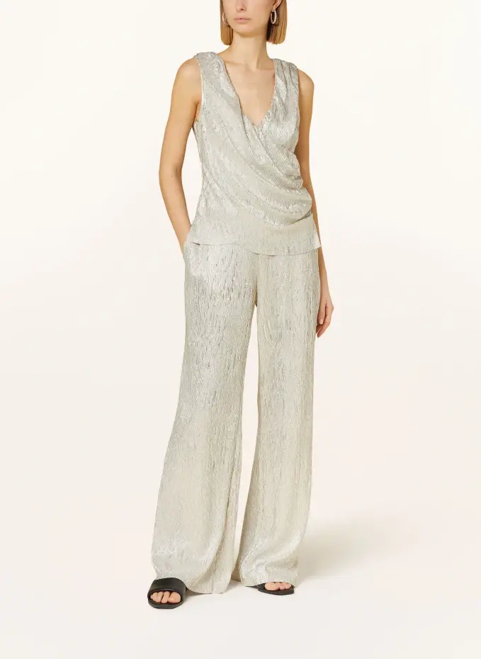 Высокая талия. Прямая нога. Эластичный пояс. Боковые карманы. Блестящий дизайн. Эффект морщин. Качество Джерси