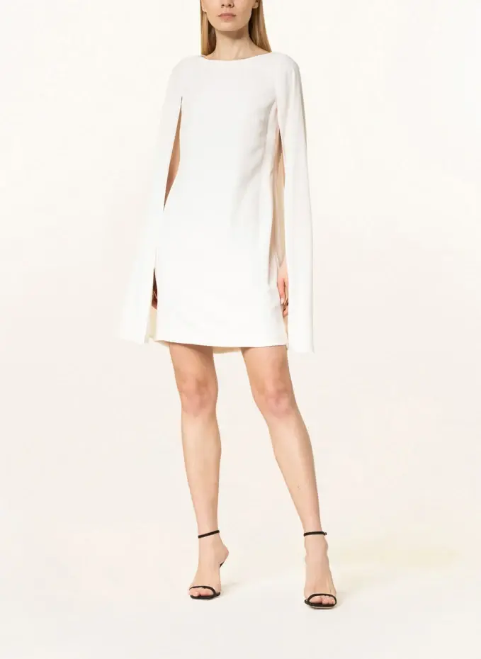 Прямого покроя. Круглый вырез. Дартс на уровне груди. Без рукавов. Застегивается на тонкую молнию сбоку. Интегрированная накидка. Обработка на подкладке. Ощущение плавности