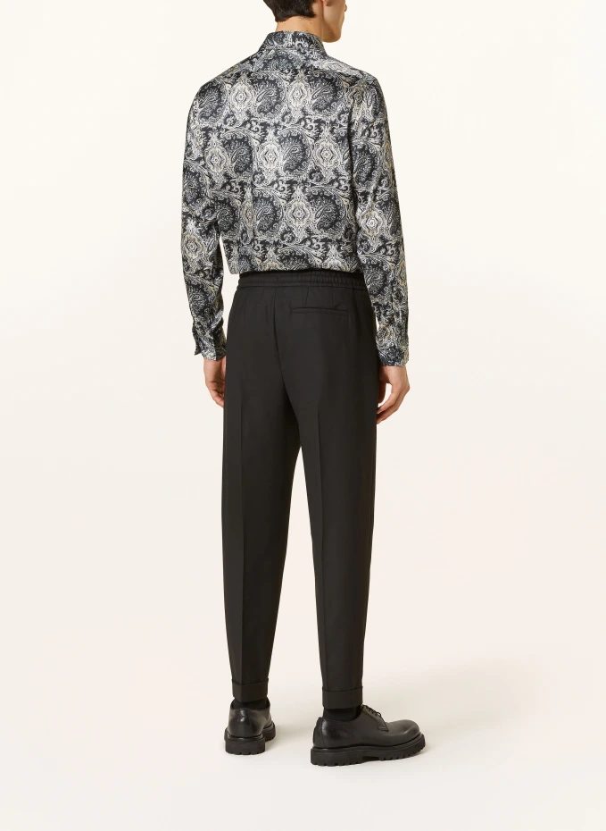 Посадка по данным производителя: Relaxed Fit. Обычная высота талии. Коническая ножка. Застегивается на пуговицу, крючок и молнию. Частично эластичный пояс с внутренней кулиской. Складки, подчеркивающие фигуру. Боковые прорезные карманы. Прорезные карманы сзади. Фиксированные манжеты на концах штанин. Тонкая саржевая структура