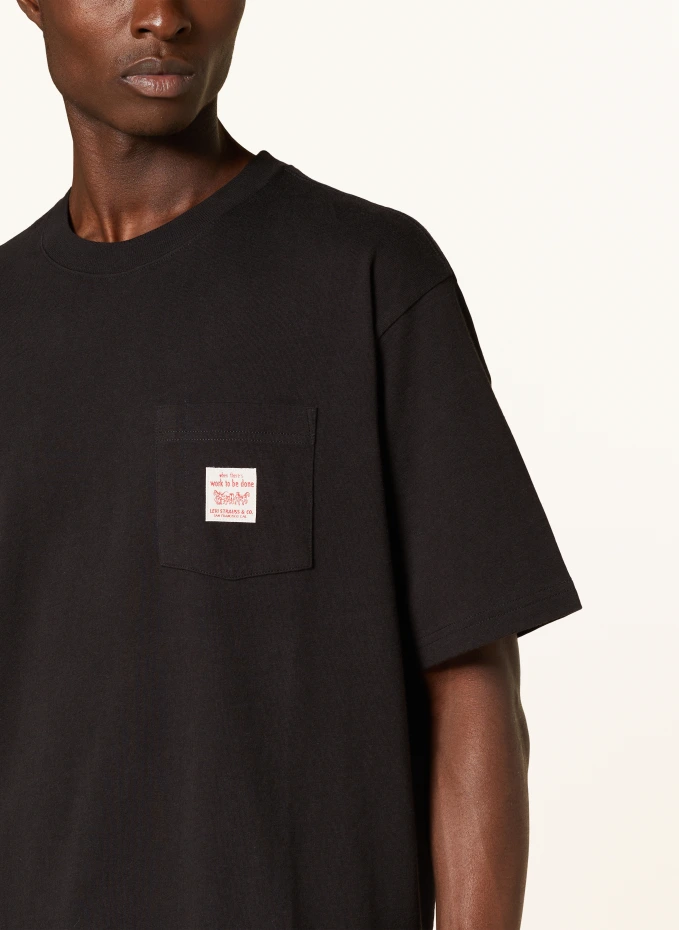 Прямого покроя. Ребристый круглый вырез. Нагрудный карман. Нашивка с этикеткой на нагрудном кармане. Чистый хлопок