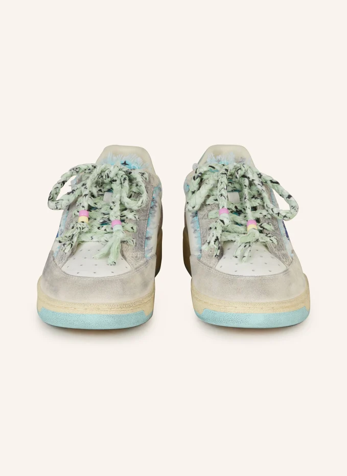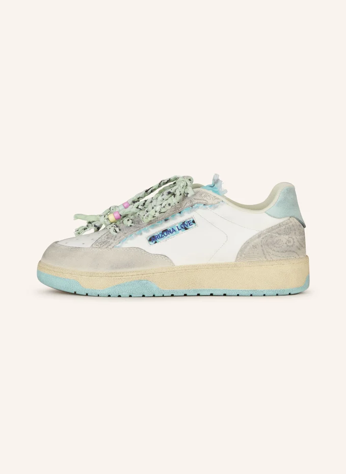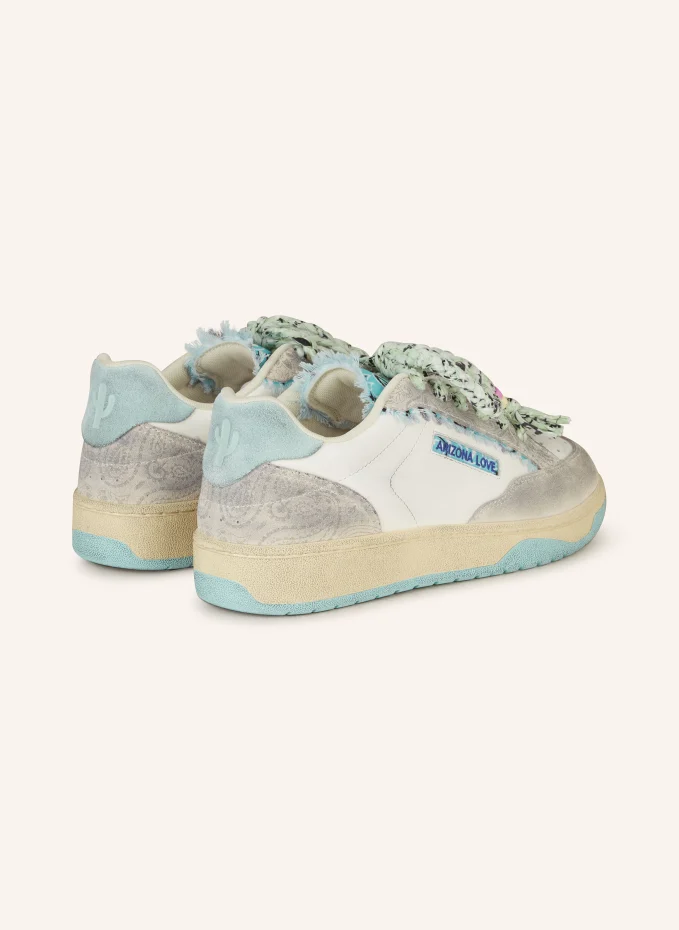 Кожа, текстиль. Детали с бахромой в средней части стопы и на язычке. Перфорация на носке. Мягкий край стержня. Мягкий язык. Потяните язычок за язычок. Плетеные шнурки с бусинами. Структурированная подошва с канавками протектора. Подошва-платформа во всю длину. Отличительная профильная подошва. Боковая этикетка. Рельефная этикетка на древке. В комплект входит бандана