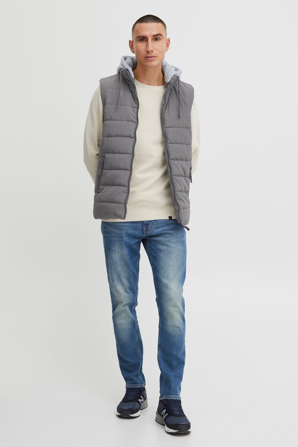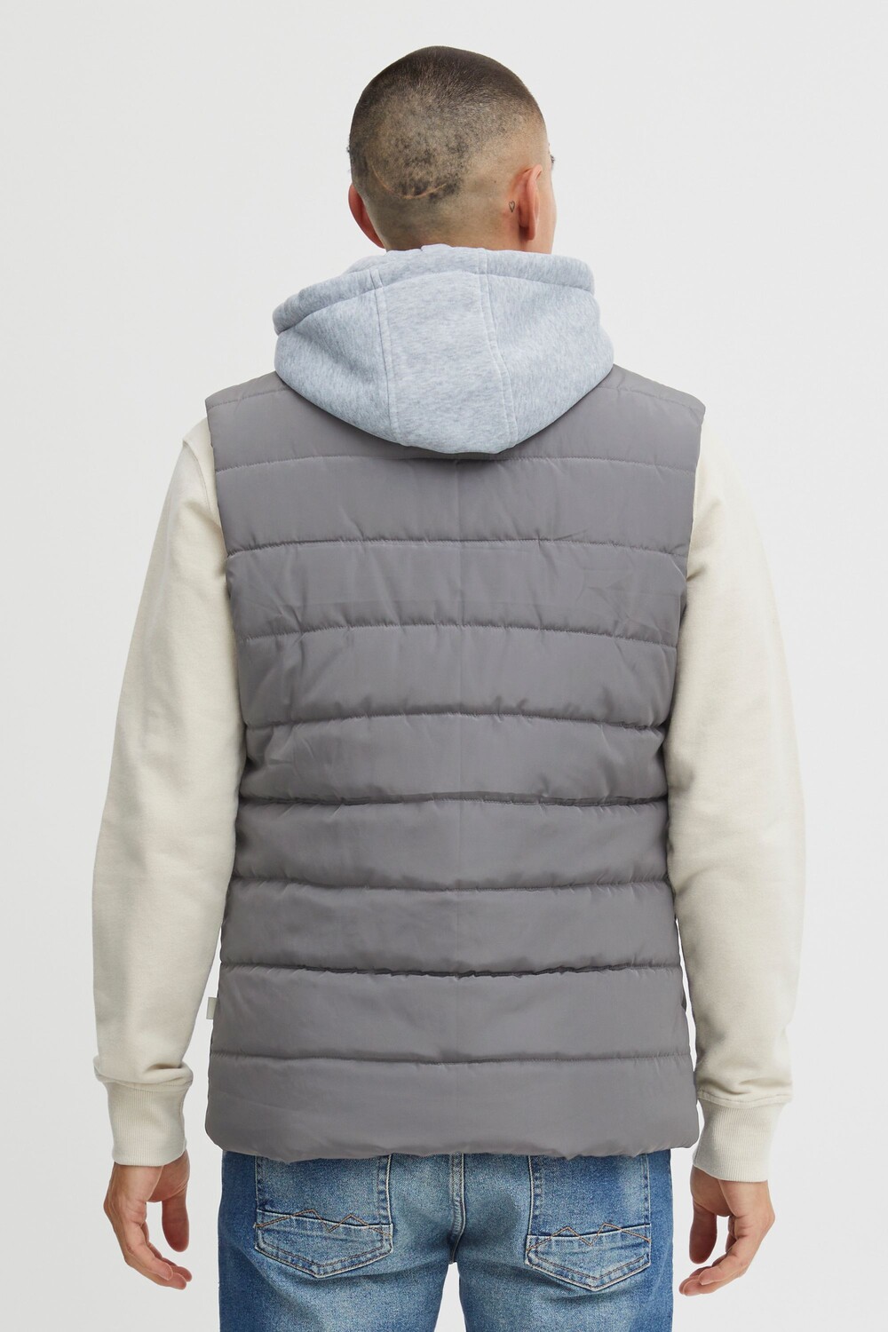 ДЕТАЛИ И ОСОБЕННОСТИ: Стеганый жилет, теплая подкладка, высокий воротник, капюшон на кулиске, плоские хлопковые шнуры, застежка на пластиковую молнию, тканевая нашивка, прямой низ, два боковых кармана, один внутренний карман, прочный и высококачественный материал, стандартная посадка, со съемным капюшоном-толстовкой, двухцветными шнурами из полиэстера на капюшоне и карманах