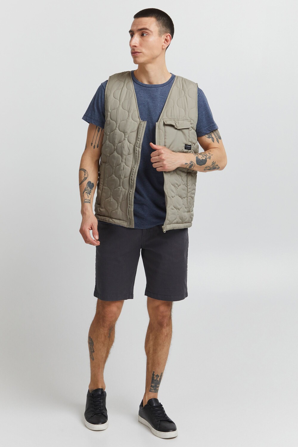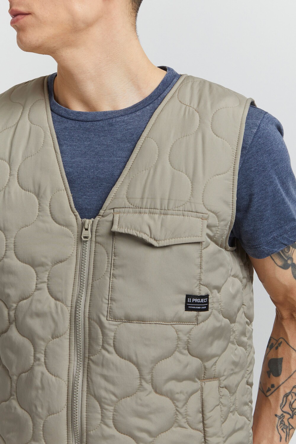 ДЕТАЛИ И ОСОБЕННОСТИ: Стеганый жилет, на легкой подкладке, застегивается на пластиковую молнию, тканевую нашивку, закругленный низ сзади, два боковых кармана и один нагрудный карман, один внутренний карман, прочный и высококачественный материал, стандартная посадка, красивая стежка. выкройка