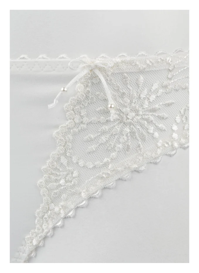 Непрозрачная обработка. Пояс до бедра. Высокий вырез по ноге. Хлопковая ластовица. Умеренное покрытие нижней части.Эластичный материал. Вышивка по бокам. Зубы мыши на краю. На поясе изящные бантики с декоративными бусинами.