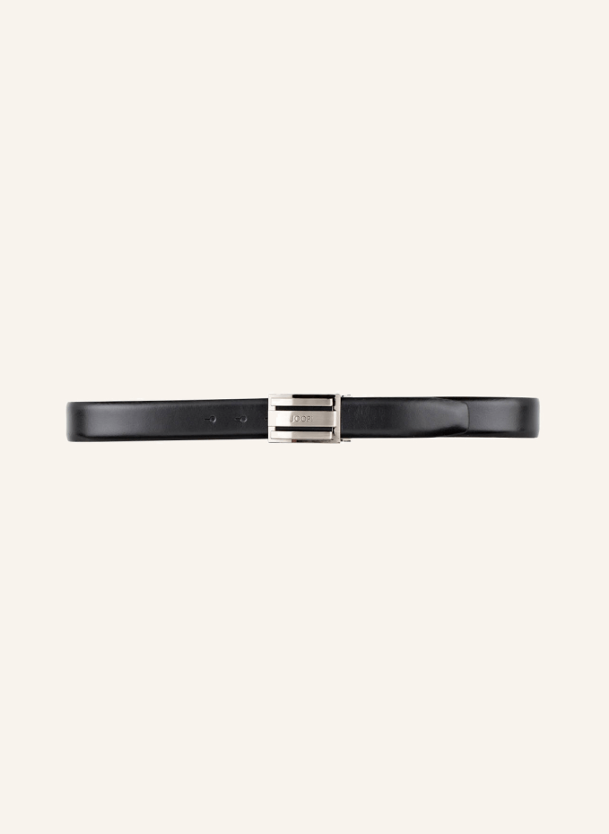 Пряжка ремня. Пряжка серебристого цвета с гравировкой логотипа. Гладкая кожа