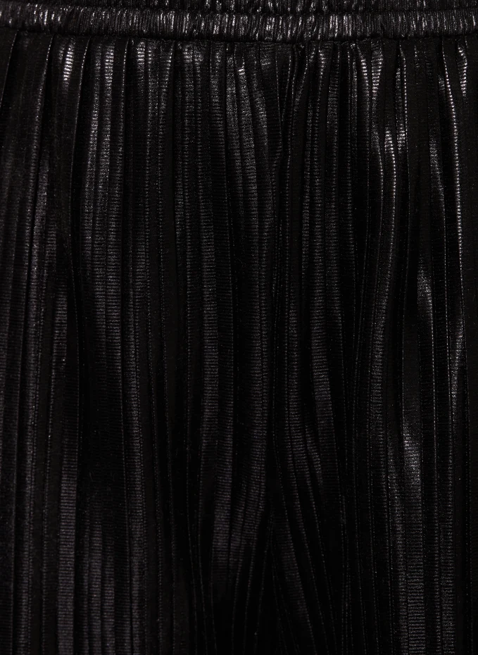 Для девочек. Широкая, укороченная нога. Эластичный пояс. Со складками. Обработка на подкладке. Блестящий эффект