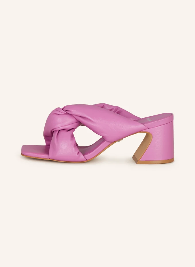 Гладкая кожа. Мягкие лямки на подъеме. Деталь узла на ремешке. Квадратная форма. Обтянутый скульптурный каблук