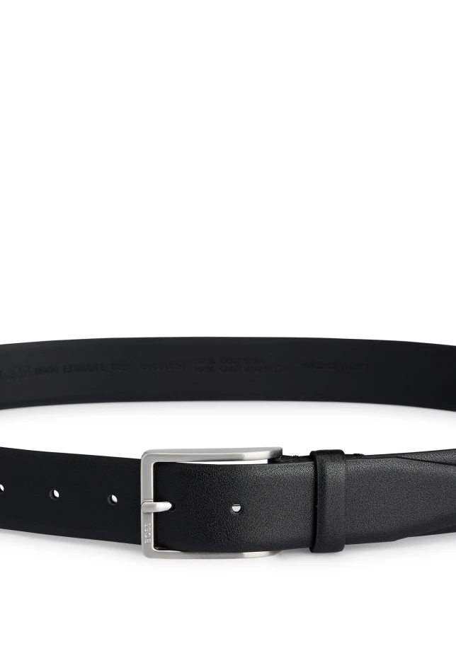 Элегантный ремень BOSS шириной 3,5 сантиметра, изготовленный в Италии из итальянской кожи и оснащенный металлической застежкой цвета матового серебра с выгравированным логотипом. Для оптимальной посадки ремень должен быть на один размер больше вашей талии. При производстве нашей продукции мы всегда ищем более экологичные решения. По крайней мере 60% кожи в этом изделии производится на сертифицированных кожевенных заводах. Тисненый логотип снаружи. Ширина: 3,5 см. Детали отделки: Детали из матового серебра. С внутренней подкладкой.