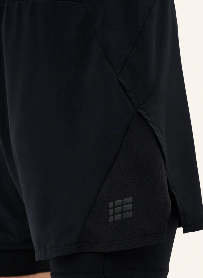 Шорты The Run 2in1 от CEP сочетают в себе стиль и функциональность. Внутренние шорты повторяют каждое ваше движение и оказывают мягкое компрессионное давление - для идеального комфорта и свежести ног на долгое время. Свободные внешние шорты обеспечивают максимальную свободу движений, а потайной внутренний карман и задний карман на молнии позволяют разместить смартфон и ключи. Ноги дольше остаются свежими благодаря мягкому сжатию. Потайной карман на внутренних шортах. Карман на молнии на поясе. Пояс на шнурке.