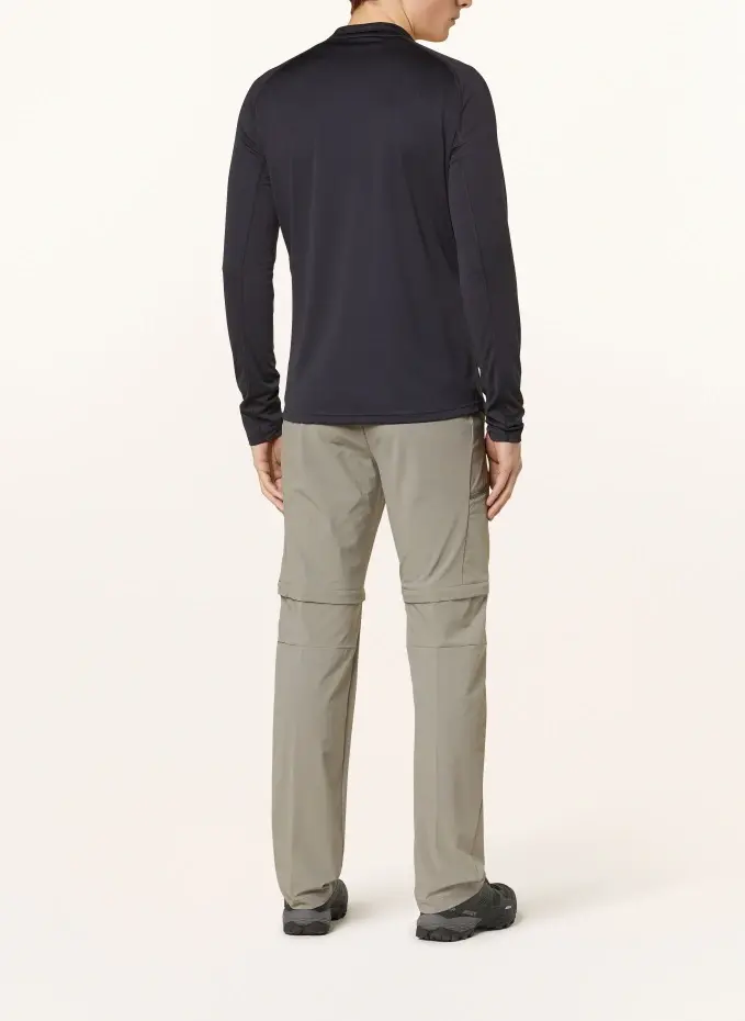 Изготовлен из функционального материала. Растяжка в 2 стороны. Водоотталкивающее эко покрытие. PFC бесплатно. УФ-защита. Посадка согласно производителю: Regular Fit. Прямая нога. Можно носить как шорты с функцией застежки-молнии. Колени предварительной формы. Закрывается на кнопку и молнию. Пояс с петлями для ремня. Боковые карманы на молнии. Карман на ноге на молнии с сетчатой подкладкой. Задний карман на сетчатой подкладке. Детали этикетки. Область применения: походы.
