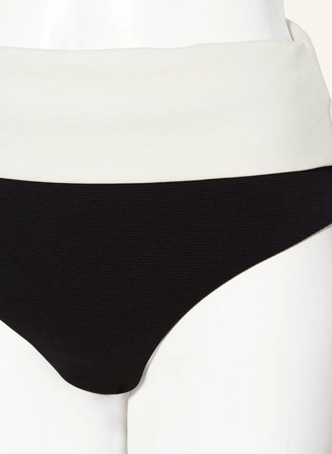 Высокая талия. Умеренный вырез ног. Конверт на поясе. Полное освещение позиции.Двухцветный вид. Ребристый дизайн