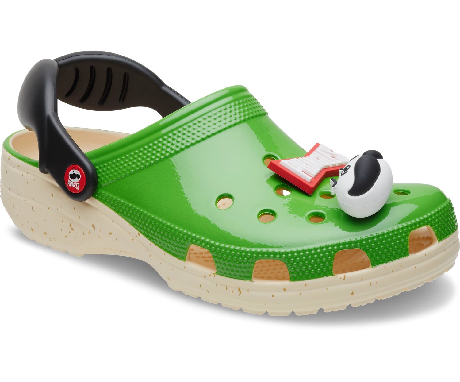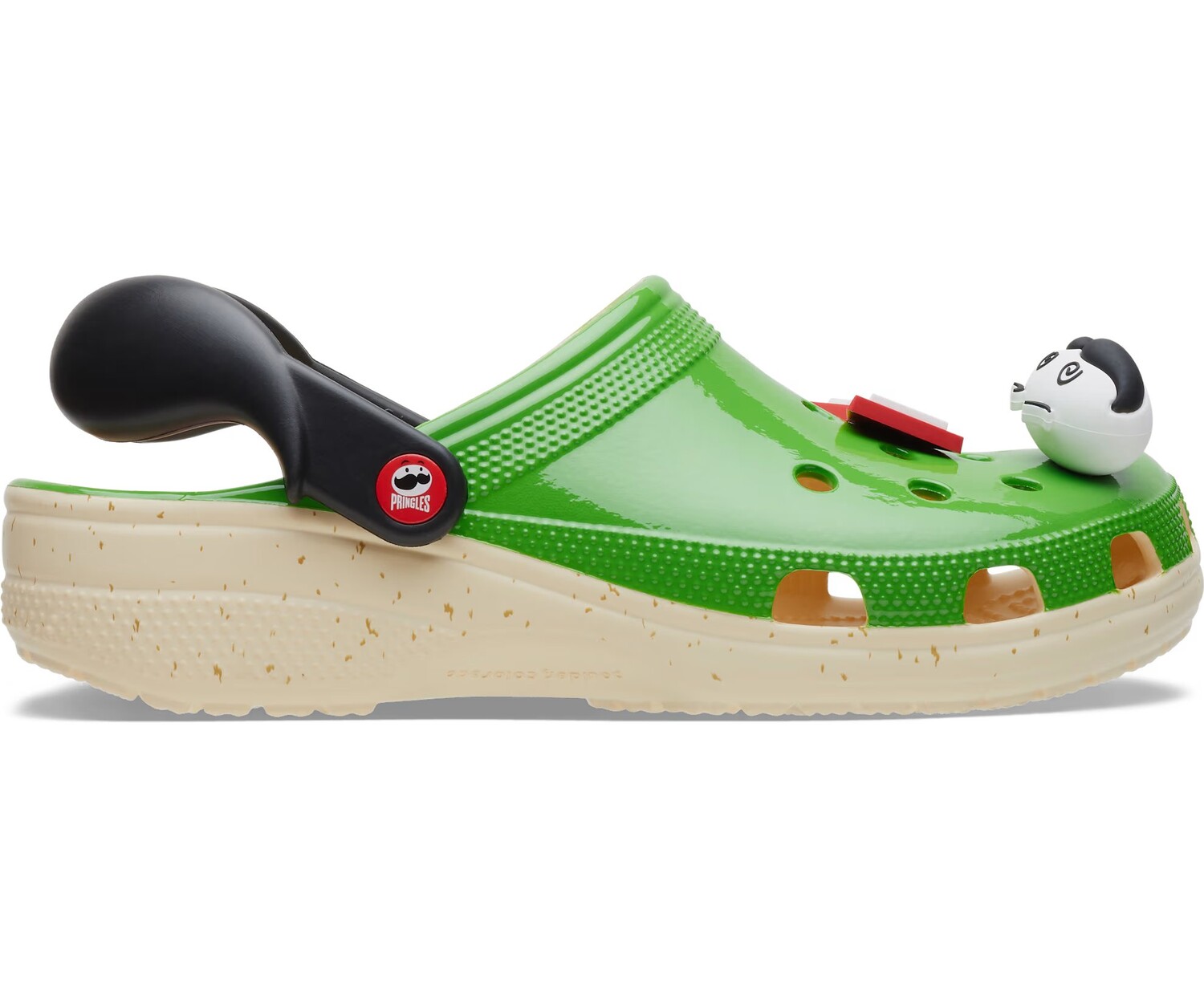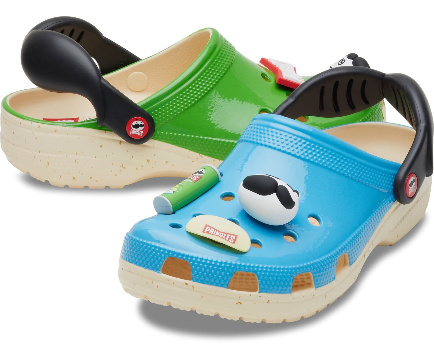 Pringles x Crocs объединились для создания забавной коллекции, которая удовлетворит любой вкус моды. Откиньтесь на спинку стула в удобных классических сабо с разными цветами, чтобы вам не пришлось выбирать между любимыми вкусами. Пухлый ремешок на пятке имеет форму знаковых усов мистера Пи - уникальная особенность стиля. Эксклюзивные брелоки Pringles Jibbitz украшают глянцевый верх, так что вы можете носить свой стиль закуски громко и гордо.