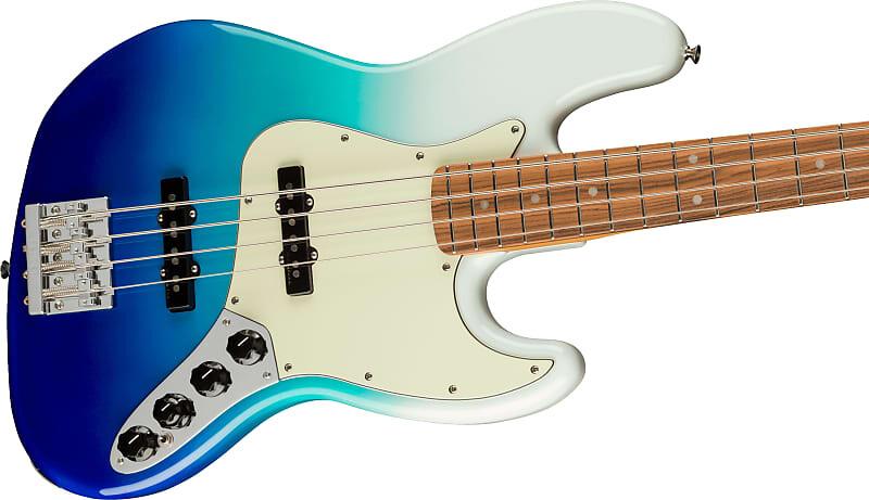 НА ИЗОБРАЖЕНИИ: Player Plus Jazz Bass, накладка на гриф Pau Ferro, цвет Belair Blue