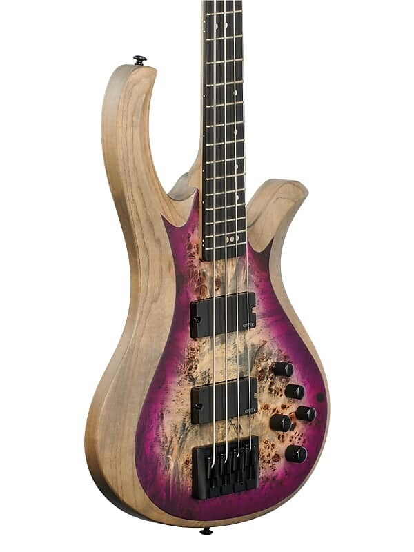 Этот инструмент начинается с 5-компонентного ламинированного грифа из клена/грецкого ореха с болтовым креплением, усиленного стержнями из углеродного волокна и увенчанного 34-дюймовой накладкой из черного дерева, оснащенной 24 узкими ладами Jumbo, которые затем подгоняются друг к другу. до легкого корпуса из болотного ясеня с сногсшибательной вершиной из капа тополя.