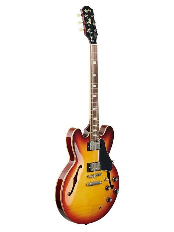 Тонкий полуакустический арктоп, принесший класс арктопа в эпоху рока. Центральный блок из цельного клена для дополнительного сустейна и сопротивления обратной связи, хамбакеры Alnico Classic PRO, колки Grover Rotomatic и верхняя и нижняя дека из шпона огненного клена. Фигурная гитара ES-335 "Inspired by Gibson" посвящена бессмертной гитаре ES-335. Epiphone ES335 Figured Semi-Hollowbody Guitar Технические характеристики
