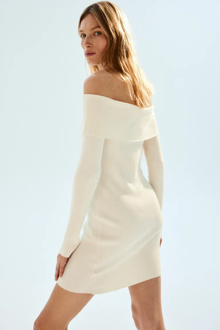Платье без плеч из трикотажа в рубчик H&M, бежевый