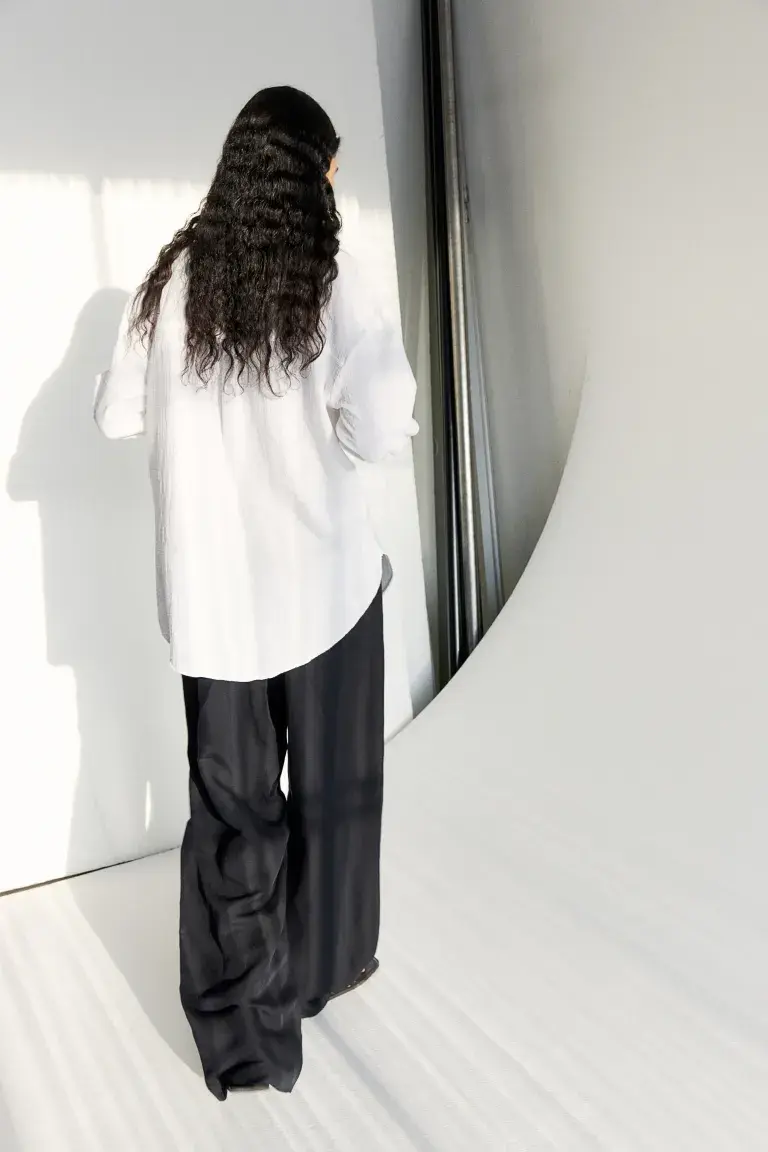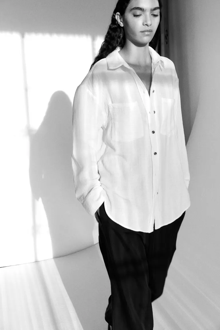Блуза из мягкого хлопка с воротником, планкой на пуговицах и кокеткой сзади со складками. Свободная посадка. Заниженная линия плеча, манжеты на пуговицах и открытые нагрудные карманы. Слегка закругленный низ. Рост модели: Модель 180 см/5 футов 11 дюймов, размер M. Длина: Обычная длина. Длина рукава: Длинный рукав. Посадка: Свободный крой. Воротник: Отложной. Описание: Белый, однотонный.