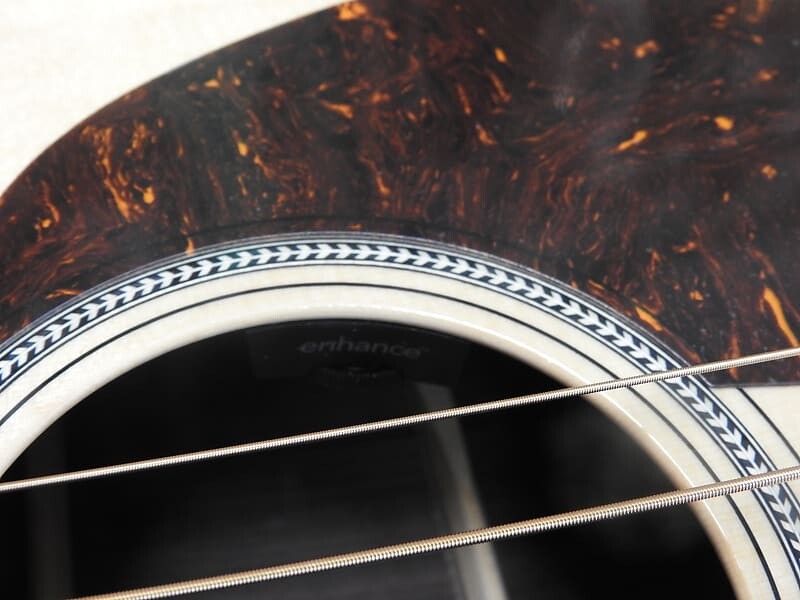 Из-за доступности материалов эта гитара может быть либо с черепаховым рисунком, либо с черной накладкой. Выбор может отличаться