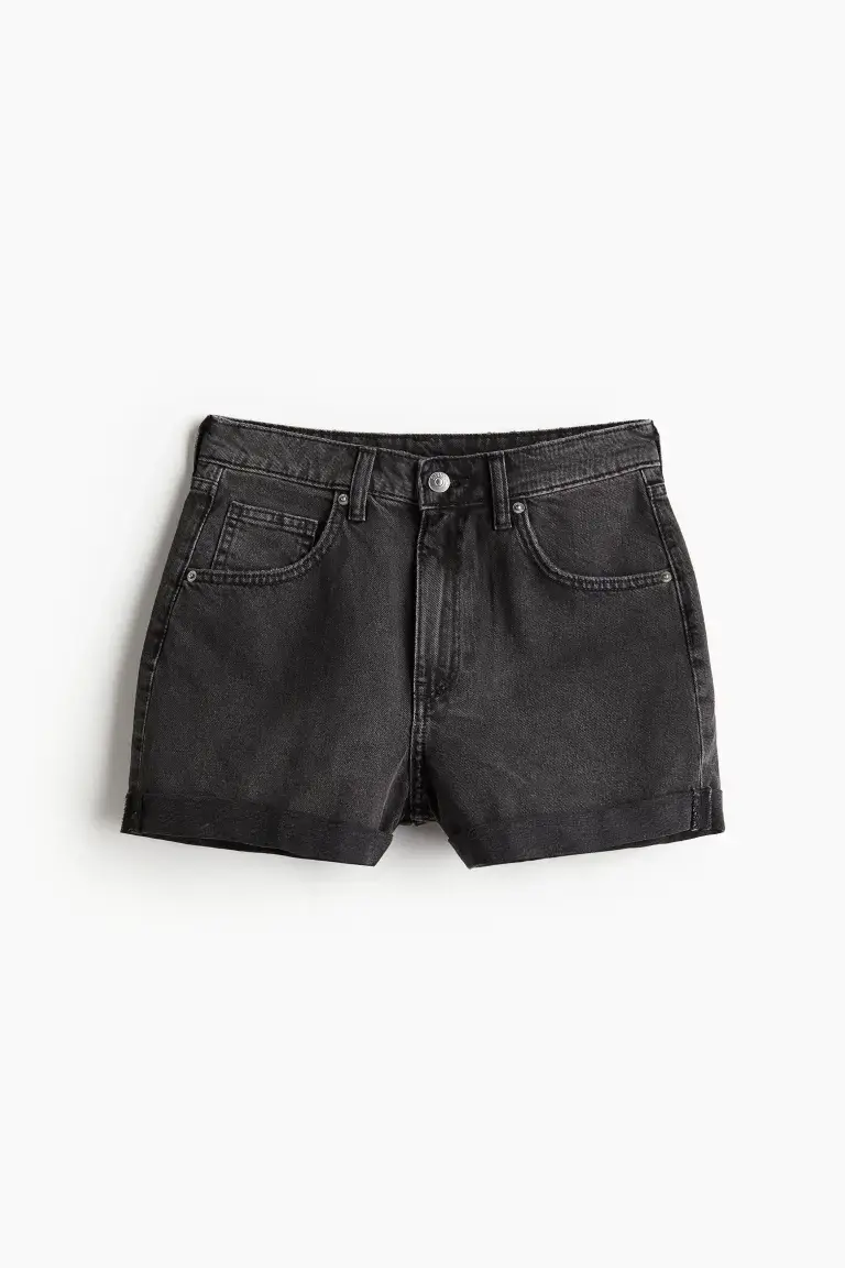 Шорты с пятью карманами из плотного хлопкового денима. Модель с завышенной талией, застежкой-молнией и пуговицами спереди. Размер модели: Рост модели 178 см/5 футов 10 дюймов, на ней размер 36. Размер: Внутренняя часть штанины: Длина: 6,5 см (размер 38). Длина: Короткая. Высота талии: Высокая талия. Посадка: Стандартная посадка. Описание: Черный, монохромный. Концепция: РАЗДЕЛЕНА.