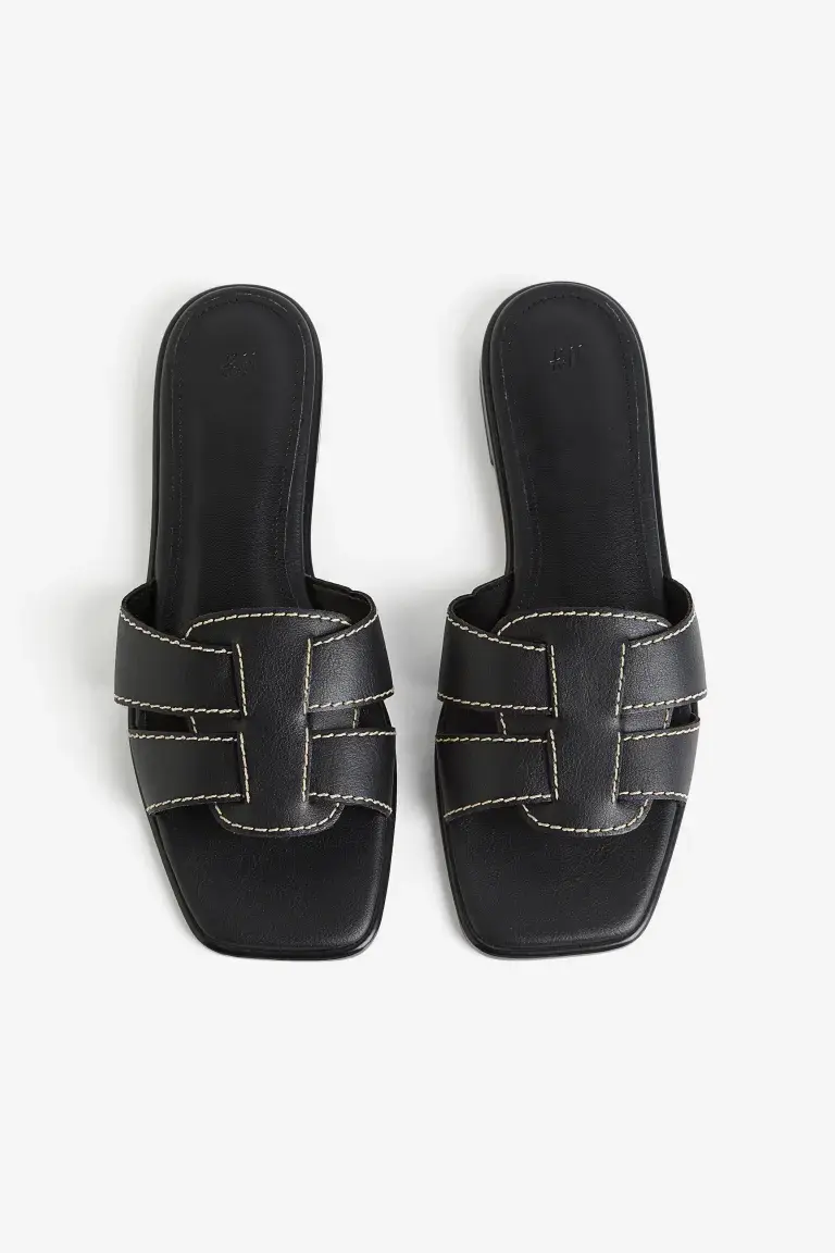 Сандалии с квадратным носком и широким ремешком на щиколотке с контрастной строчкой. Высота каблука: Низкий каблук. Стиль обуви: сандалии. Описание: Черный, Обычный