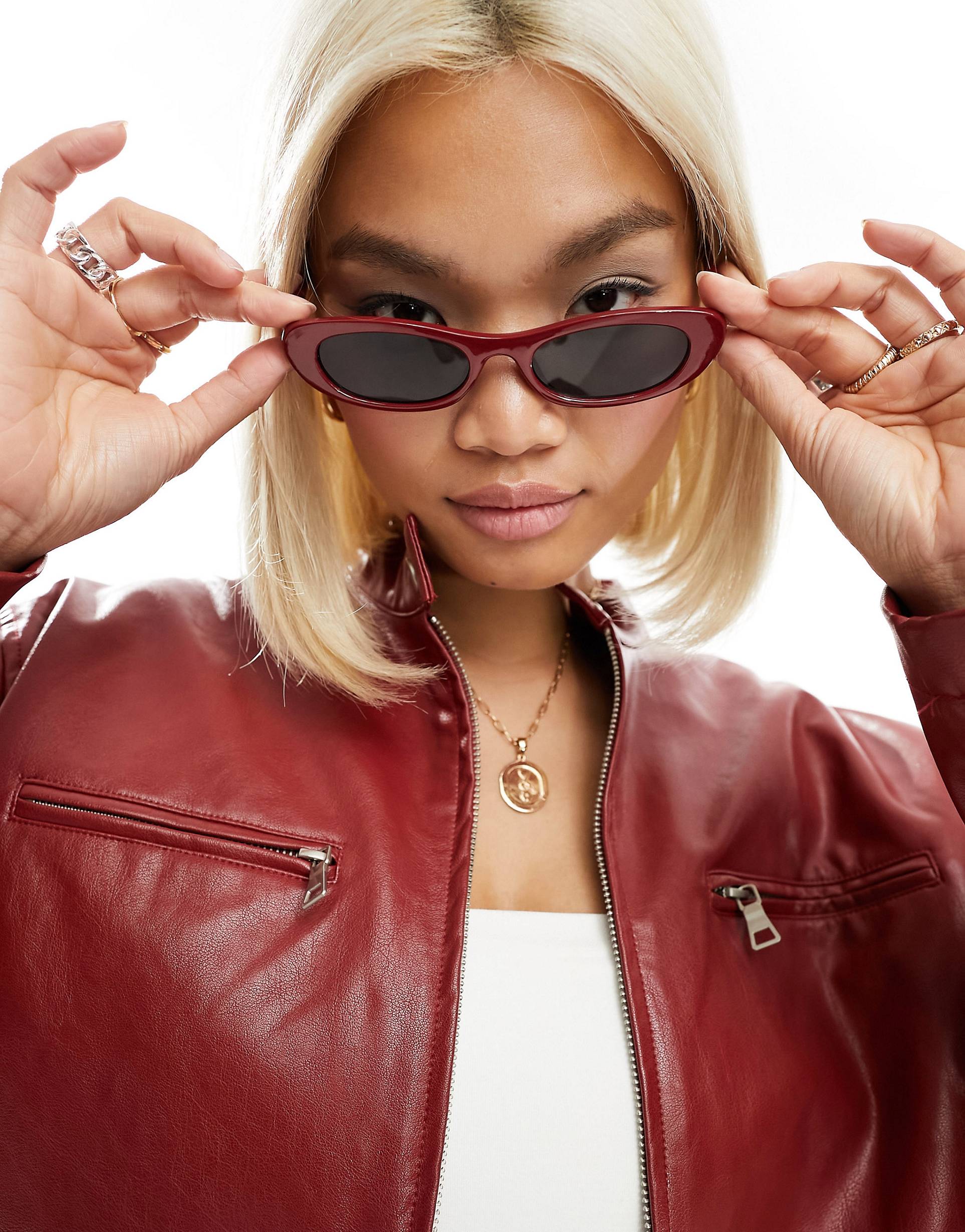 Красные узкие овальные солнцезащитные очки ASOS DESIGN.