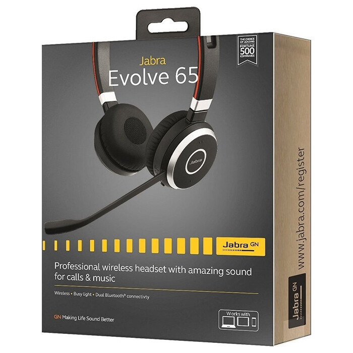 Беспроводная гарнитура Jabra Evolve 65 UC Stereo: одно из лучших решений для удаленной работы. Устройство работает без проводов и может одновременно подключиться и к стационарному ПК, и к смартфону.