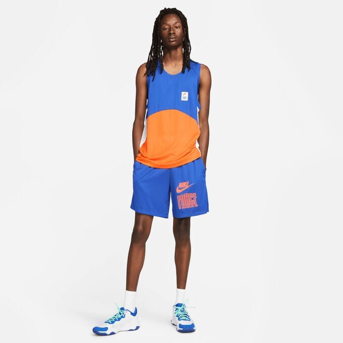 Легкие и воздушные шорты для тренировок по баскетболу от Nike. Эластичный пояс со шнурком. Дышащая, быстросохнущая и эластичная ткань благодаря технологии Dri-Fit. Контрастный принт с логотипом спереди. Боковые карманы.