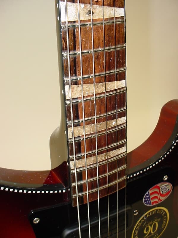 В комплекте оригинальный чехол. Эта гитара весит 7 фунтов 8 унций. Технические характеристики:Тип корпуса: SolidЦвет корпуса: JetGloNeck Дерево: кленДерево накладки грифа: Macassar EbonyNo. Лады: 21. Стиль маркера лада: Треугольники из измельченного жемчуга. Крепление грифа: Без крепления корпуса: Шахматная доска. Ширина грифа у порожка: 1,63 дюйма. Длина мензуры: 24,75 дюйма. звукоснимателей: 2Тип звукоснимателей: Hot Toasters (12k)Тип вывода: MonoCase: Унции переиздания Vintage.
