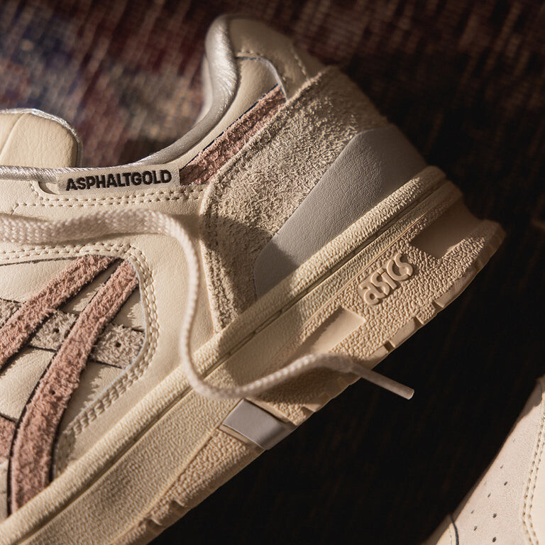 • Хотите классический придворный стиль не только на матчах, но и на улице? Вот что предлагают вам кроссовки Asics x Asphaltgold EX89 \*Impromptu\* в цветовой гамме Cream / Ginger Peach. Устойчивая к атмосферным воздействиям резиновая подошва гарантирует вашу уверенность. У вас хорошее сцепление с дорогой в любую погоду. Подкладка изготовлена из текстиля, что придает обуви ощущение непринужденности и легкости. Модель с перфорированным носком имеет еще один плюс во внешнем виде.