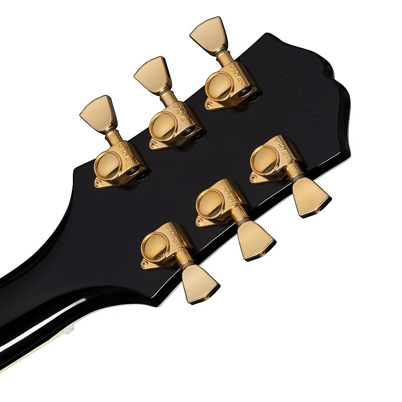 Созданная на основе знаменитых названий гитар легенды блюза Би Би Кинга, Epiphone B.B. King Lucille была вдохновлена ​​различными моделями Gibson ES, на которых он играл на протяжении многих лет, и все они были названы Lucille. Выдающиеся особенности, которые делают эту гитару Lucille такой потрясающей гитарой и данью любви, включают золотую фурнитуру, колки Grover Rotomatic, порожек Graph Tech, накладку грифа из черного дерева с перламутровыми вставками в виде блоков, латунную крышку анкерного стержня с выгравированным на ней именем B.B. King, мать инкрустация перламутром Lucille на лицевой стороне передней грифа, многослойная окантовка корпуса и передней грифа, струнодержатель TP-6 ​​с тонкими настройками и полуажурный корпус с кленовым центральным блоком для уменьшения обратной связи. В отличие от большинства гитар с полуполым корпусом, топ B.B. King Lucille не имеет эфов; Сам BB запросил эту функцию, чтобы еще больше уменьшить вероятность обратной связи. Электроника также впечатляет: шестипозиционный переключатель Varitone, пара хамбакеров Alnico Classic PRO, подключенных к потенциометрам CTS, а также стерео- и моновыходные разъемы для максимальной гибкости. В комплект также входит чехол EpiLite. Полуакустическая гитара Epiphone BB King Lucille с корпусом Epi Lite. Технические характеристики: Форма корпуса: ES-335Материал корпуса: 5-слойный клен. : Закругленный CScale Длина: 24,75 дюйма Материал накладки грифа: Черное дерево Радиус накладки грифа: 12 дюймов Количество ладов: 22 лада: Medium JumboNut Материал: Graph TechNut Ширина: 1,693 дюйма Вставки: перламутровые блоки Шарнир: вклеенный, набор грифаОтделка грифа: GoldTuner Покрытие: GoldBridge: Epiphone LockTone Tune -O-MaticTailpiece: TP-6 ​​Stop Bar с Fine TunersTuning Machines: Grover Rotomatic с кнопками KeystonePickguard: 5-слойный ES-335 стиль Bound Tortoise PickguardTrustRod: регулируемый в 2 направленияхКрышка анкерного стержня: латунный раструб; гравировка «B.B. Королевские ручки управления: черные ручки скорости, черная ручка Varitone с головкой цыпленка. Наконечник переключателя: кремовый. Шайба переключателя: золотая шайба Varitone. Регуляторы PRO: 2 регулятора громкости, 2 тона, потенциометры CTS, 6-позиционный переключатель Varitone. Селектор звукоснимателей: 3-позиционный тумблер Epiphone. .026, .036, .046Футляр: в комплекте футляр EpiLite