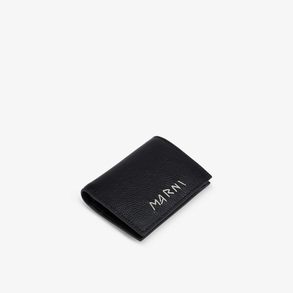 Кожаный кошелек с брендовой типографикой Marni, черный