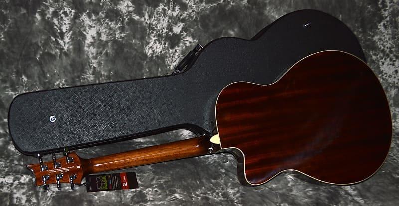Дополнительные высококачественные функции включают в себя верхнюю деку из массива ели, накладку грифа и бридж из черного дерева, костяной порожек и седло, а также инкрустации в виде птиц торговой марки PRS и дизайн передней бабки. жесткий чехол.