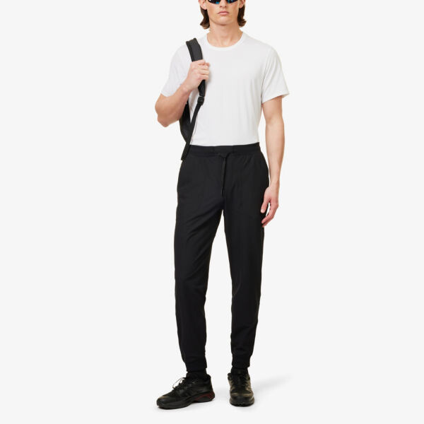 спортивные брюки Lululemon из переработанного полиэстера. 52 % переработанный полиэстер, 48 % эластомультиэстер. Тянет. Классический крой, средняя посадка, зауженные брючины, эластичный пояс на кулиске, накладные карманы спереди, манжеты по низу, фирменная фурнитура. Машинная стирка холодной водой. Модель 6 футов 2 дюйма/1. Рост 88 м, носит средний размер. Средней плотности, эластичный.
