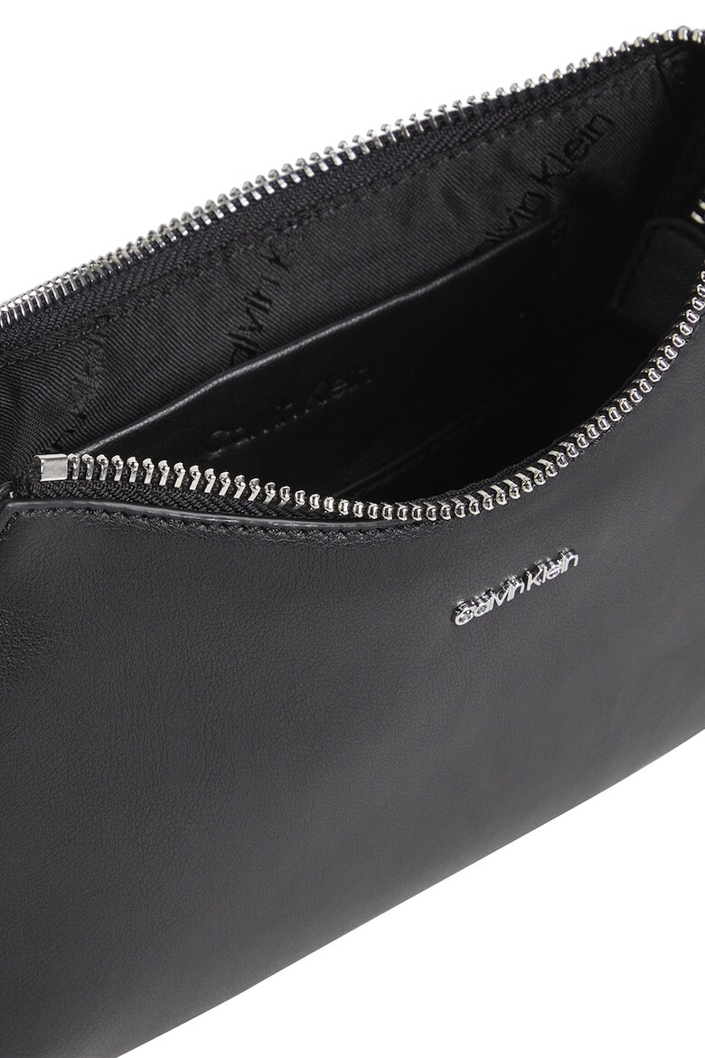 Сумка изготовлена из высококачественной экокожи, которая не только приятна на ощупь, но и отличается повышенной износостойкостью. Этот материал является отличной альтернативой натуральной коже, демонстрируя заботу бренда об окружающей среде без ущерба для стиля и долговечности. Внешний материал состоит из 51% переработанного полиэстера и 49% полиуретана, что подчеркивает приверженность Calvin Klein принципам устойчивого развития.