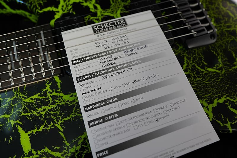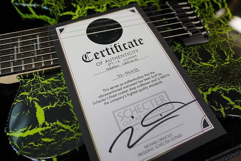 Schecter USA CUSTOM SHOP PT-7 Green Crackle 7-String Electric Guitar с черным чехлом Tolex (2022) 344 647₽
