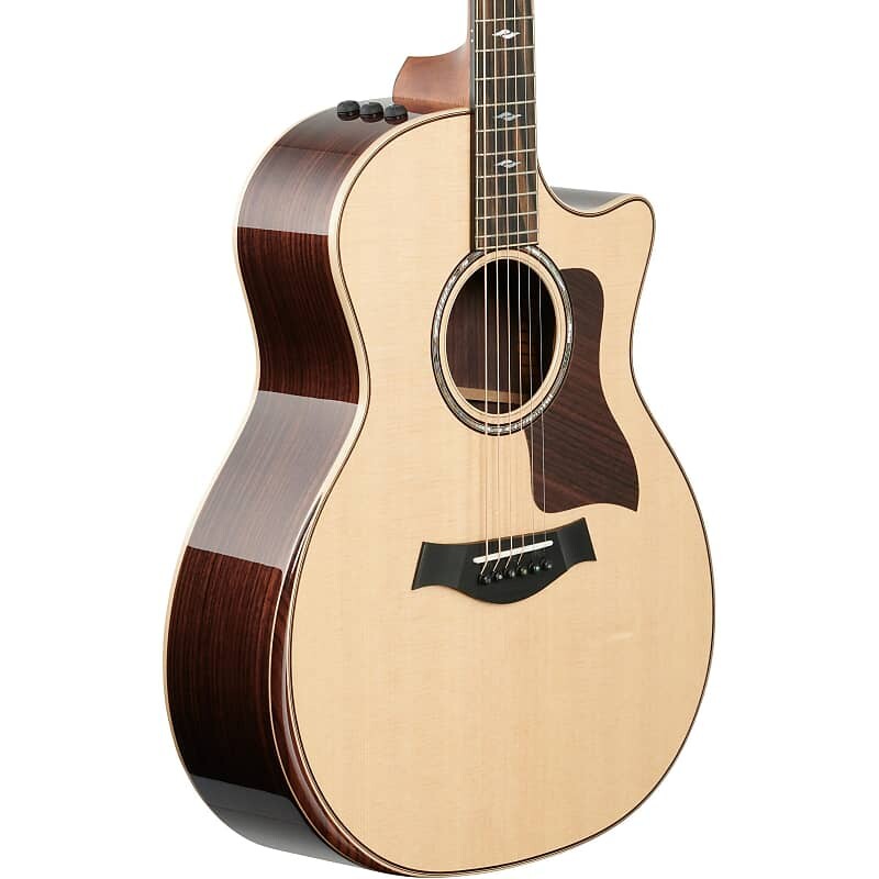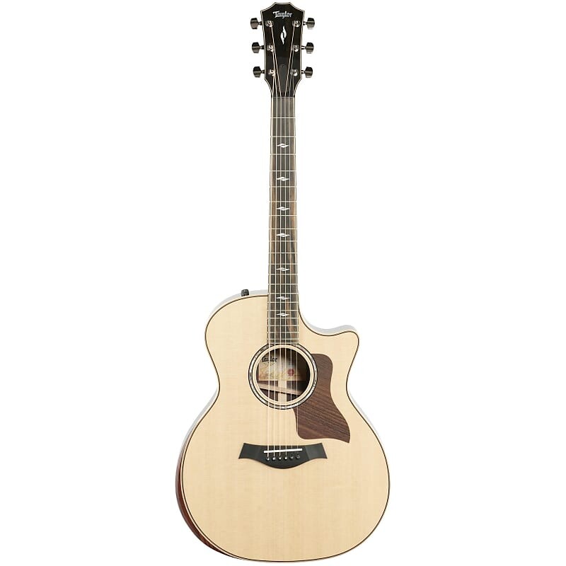 Выдающиеся особенности материала включают дымчатый Накладка на гриф из черного дерева, полученная на фабрике Taylor's Crelicam в Камеруне, переплет из клена, кромка из палисандра, радиусный подлокотник, розетка из морского ушка с окантовкой из палисандра, а также перламутровые вставки на грифе и головке грифа Element. Модель 814ce также имеет венецианский вырез и отмеченную наградами акустическую электронику ES2, а также поставляется в роскошном жестком кейсе.