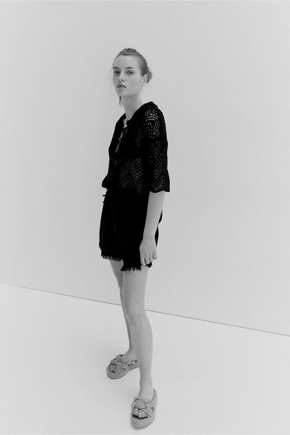Свободные шорты из нежной ткани из смеси льна и вискозы. Высокая талия, эластичный пояс со шнурком.