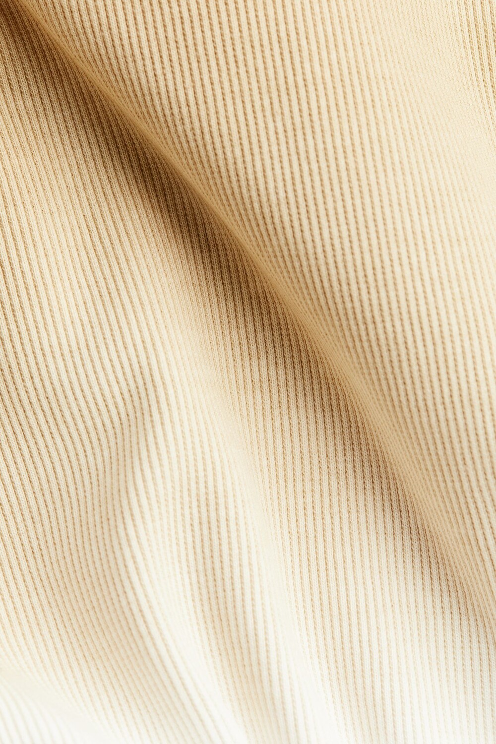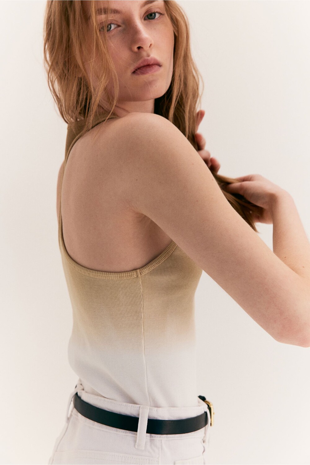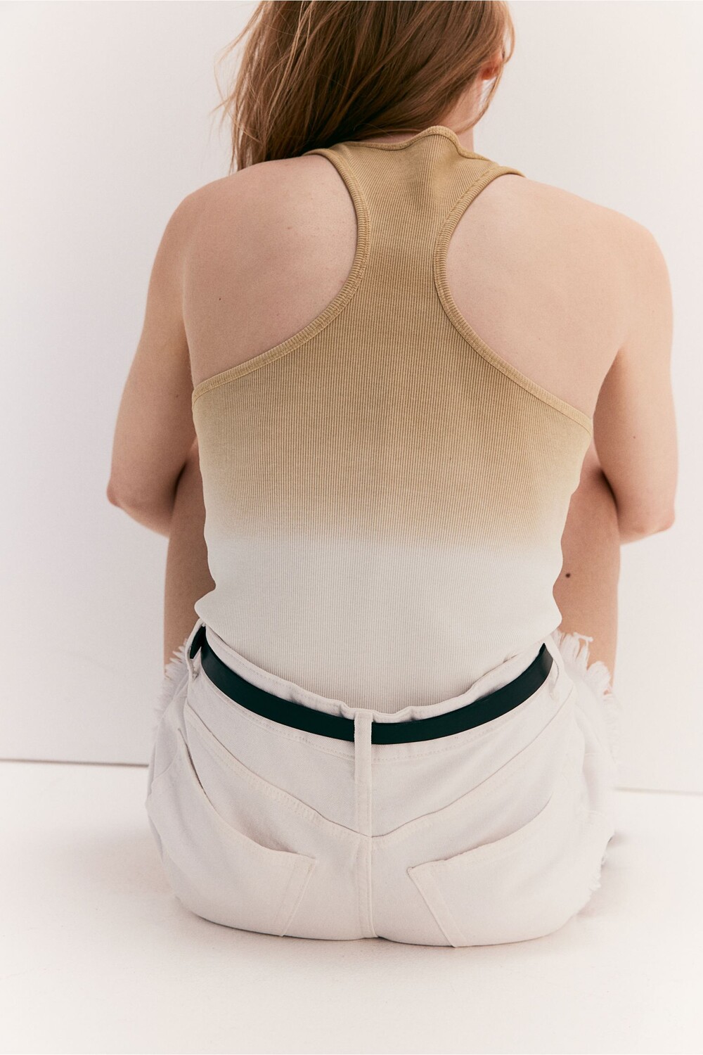 Облегающий фигуру укороченный топ без рукавов из хлопкового трикотажа в рубчик. Глубокий круглый вырез горловины, спортивная спинка-борцовка.