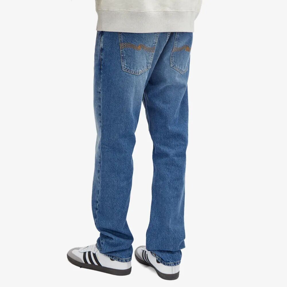 Nudie Jeans — это не просто бренд, это образ мышления, концепция и страсть. Эти джинсы изготовлены из высококачественного денима и созданы с любовью для настоящих ценителей денима. Эти брюки прямого кроя изготовлены из фирменного органического и переработанного хлопка. Выцветшая нашивка с логотипом на спине придает фирменный стиль.