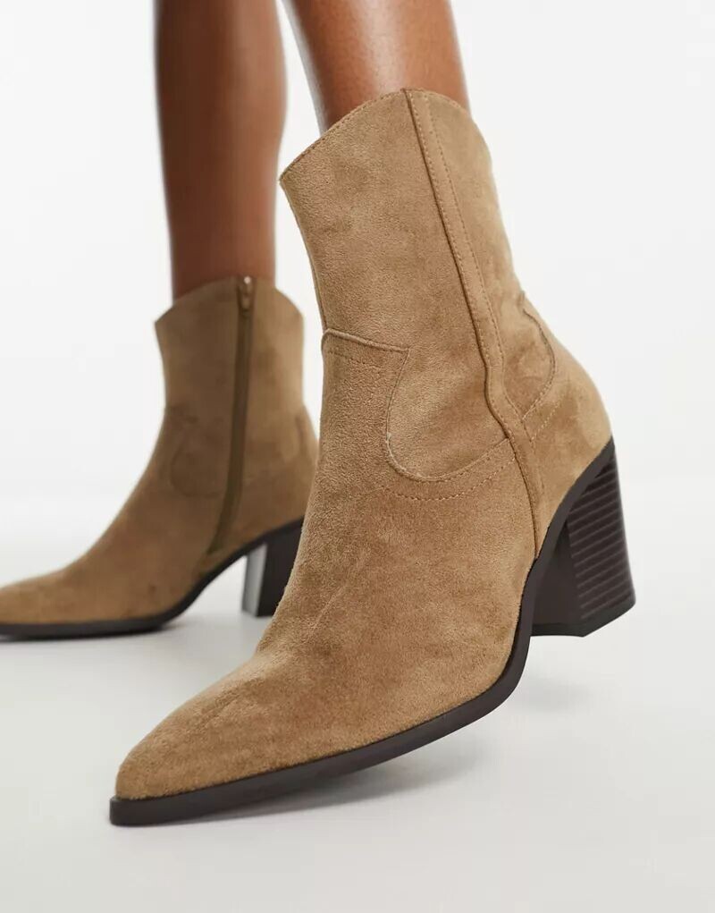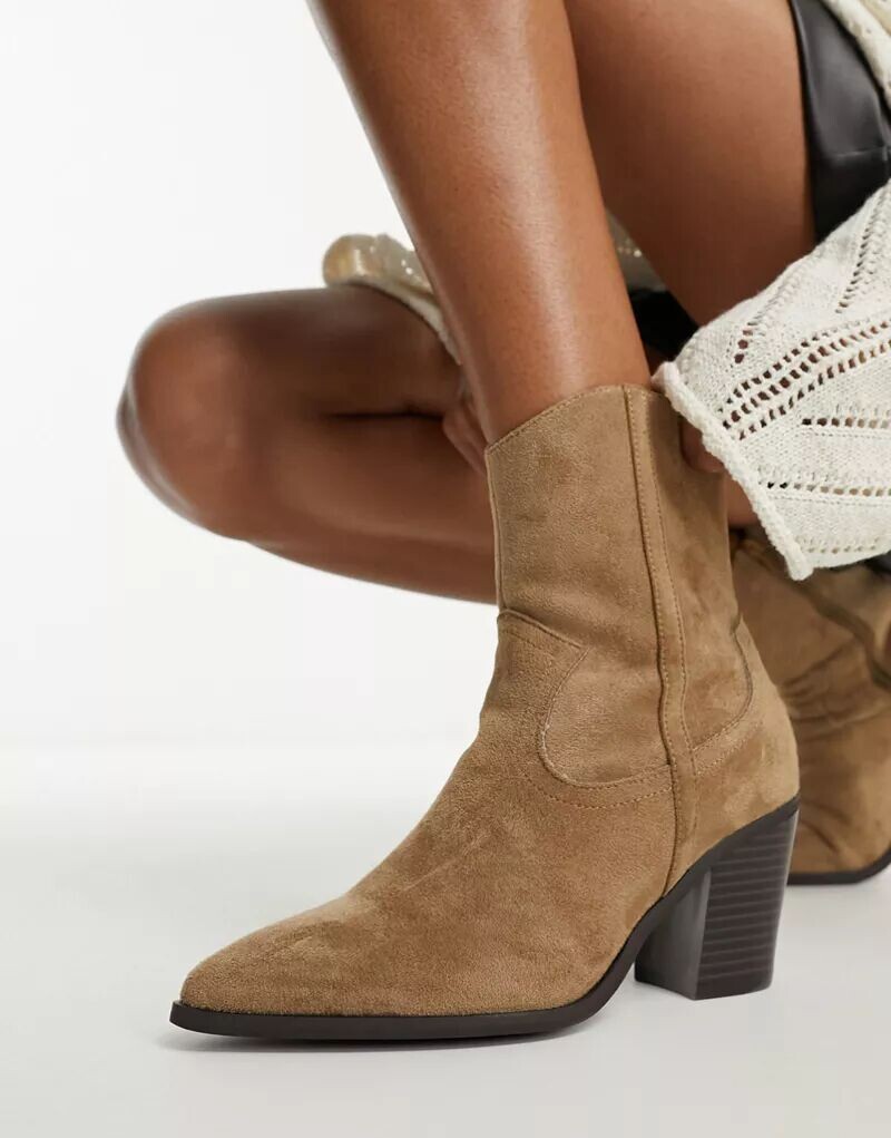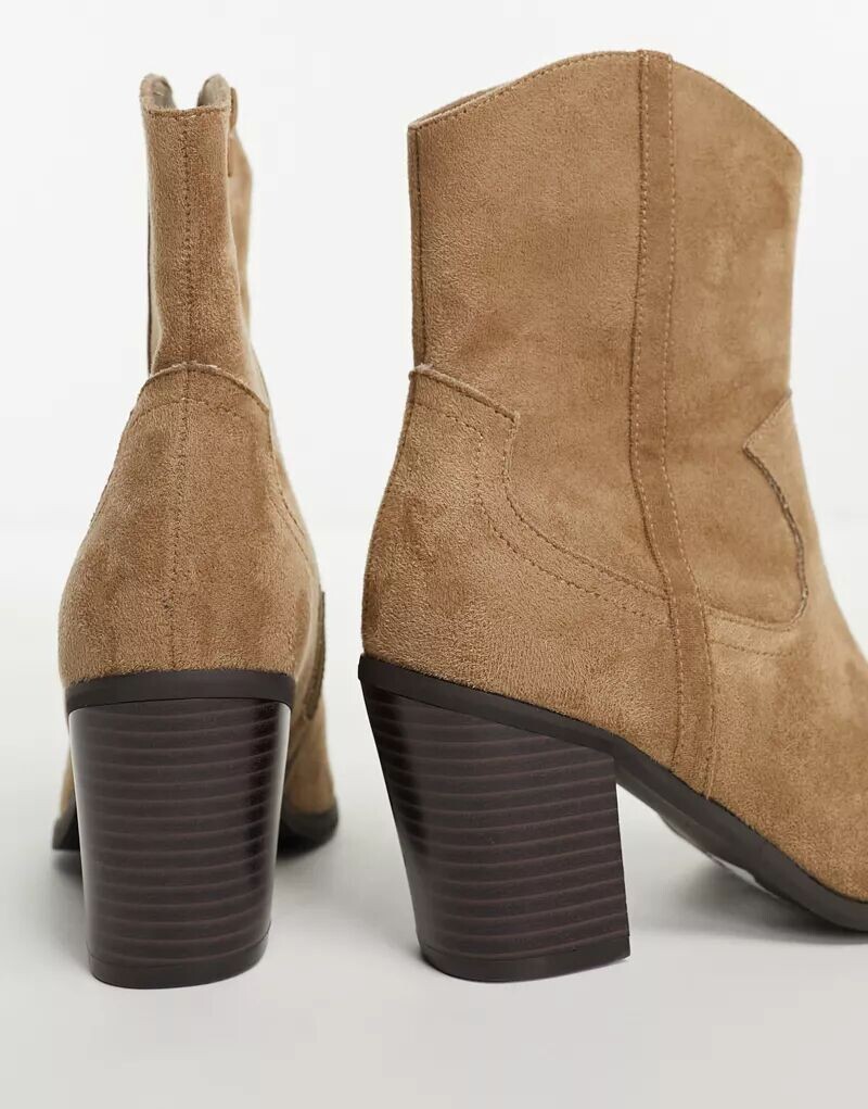Серо-коричневые ботинки в стиле вестерн на каблуке ASOS Wide Fit Rational