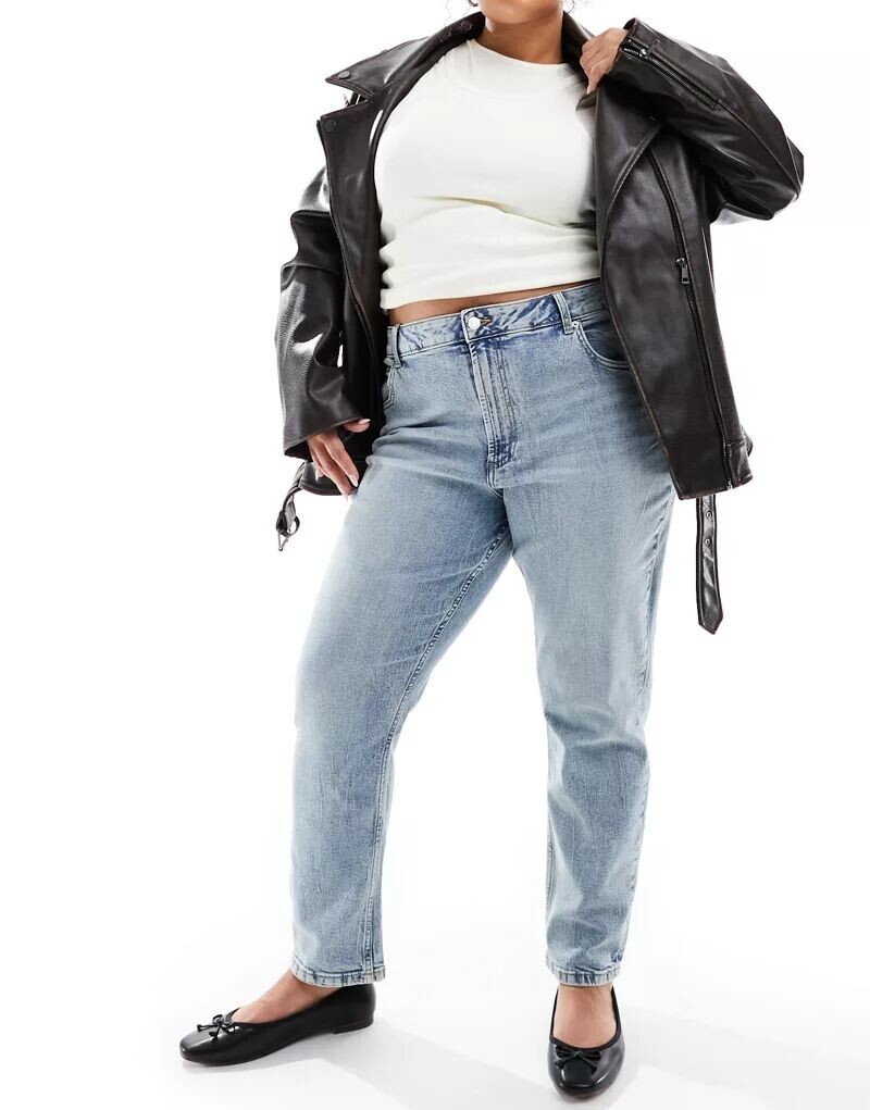 Голубые узкие джинсы Mom ASOS DESIGN Curve