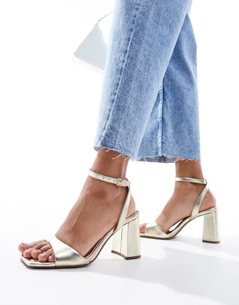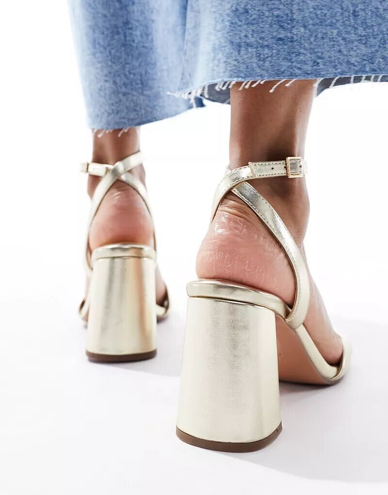 Золотистые босоножки на блочном каблуке ASOS Hotel