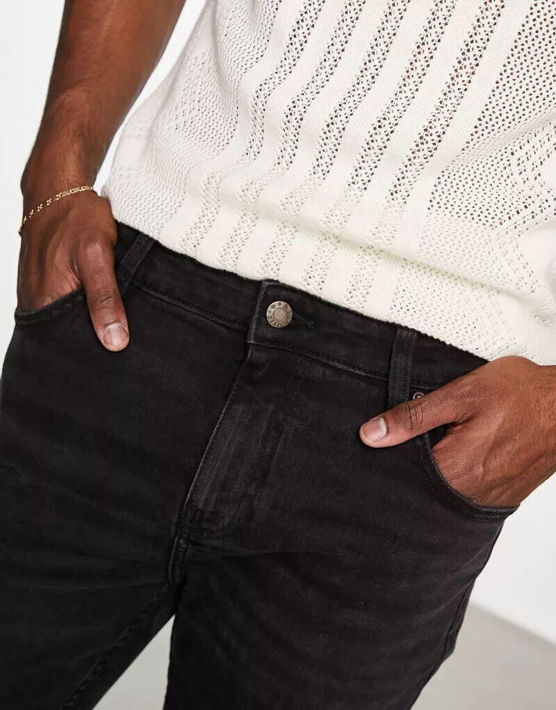 Джинсовая ткань средней плотности: стирка черного цвета. Основная часть: 99% хлопок, 1% эластан.