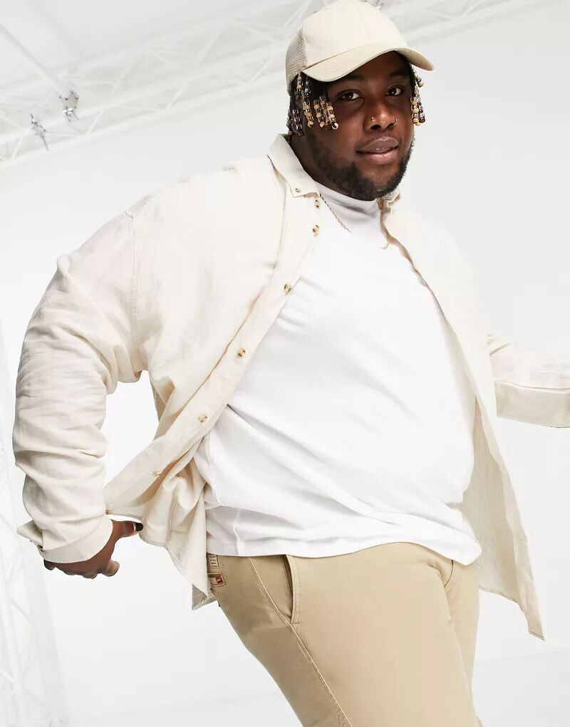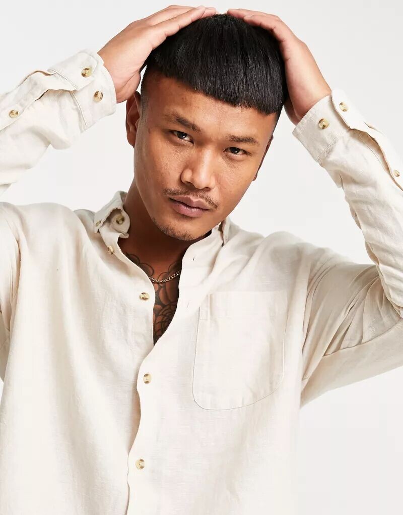 Бежевая льняная рубашка оверсайз в стиле 90-х ASOS