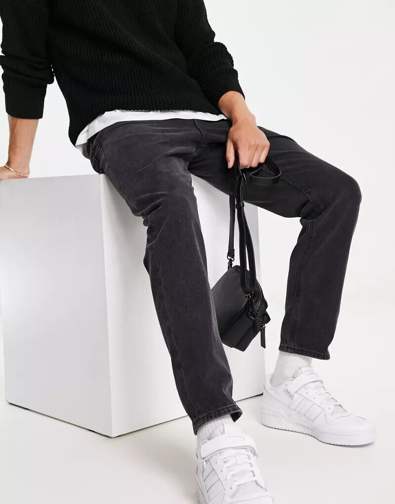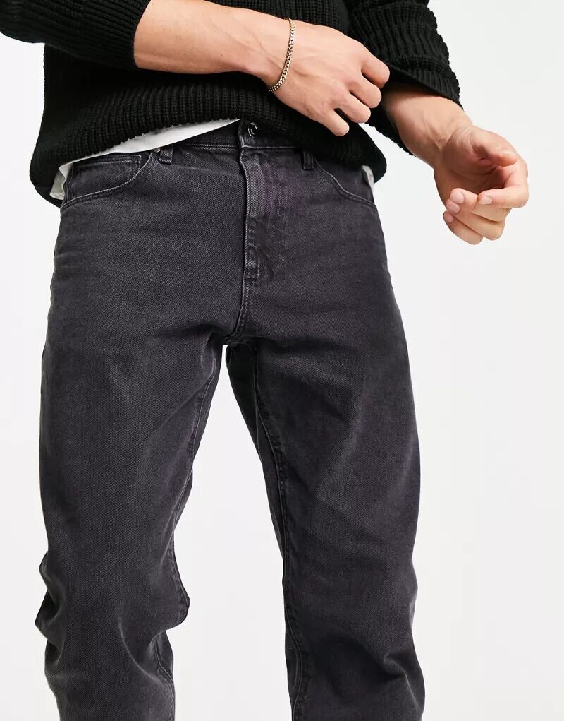 Джинсовая ткань без содержания стрейча: черный, с эффектом поношенности.