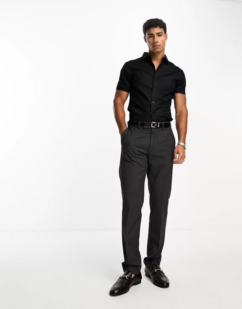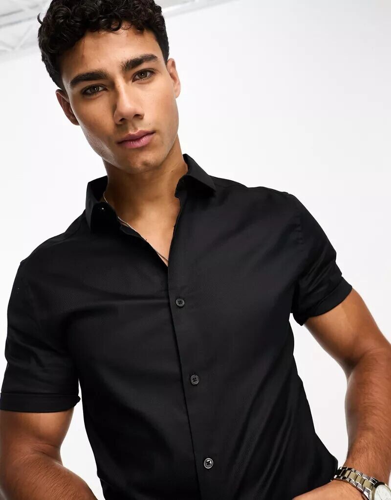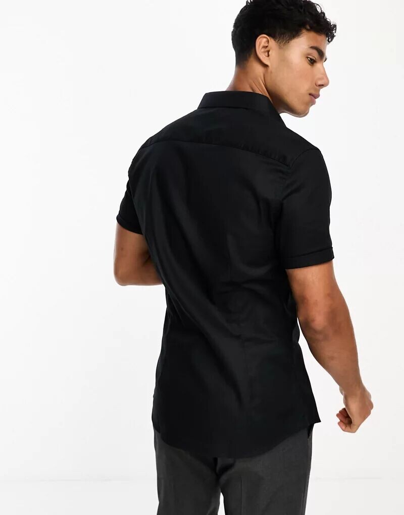 Черная оксфордская рубашка скинни ASOS с раздвинутым воротником