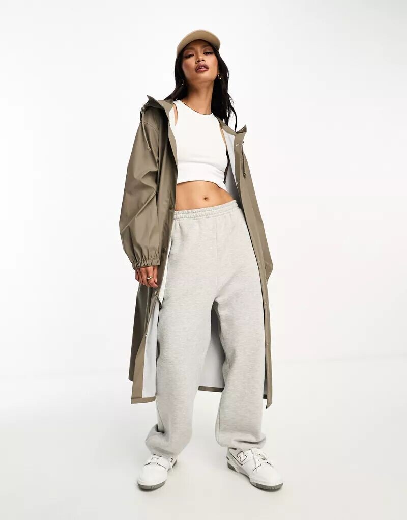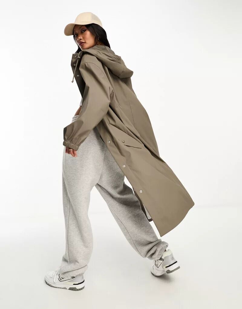 Коричневая длинная прорезиненная парка-дождевик ASOS
